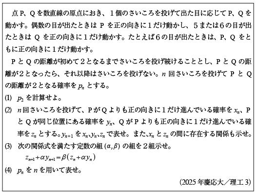 [B]数直線上の移動に関する確率漸化式の名問(2025年慶大/理工3)