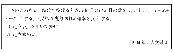 [C]単独確率漸化式を作って解く割り算の問題(1994年京大文系4)