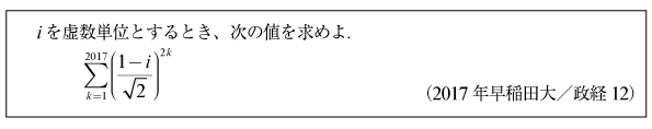 [B]複素数平面上の数列の総和の問題(2017年早大/政経12)
