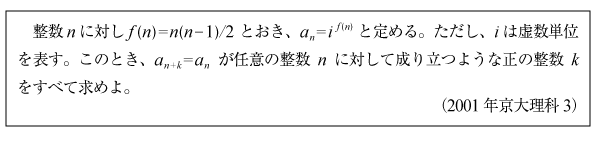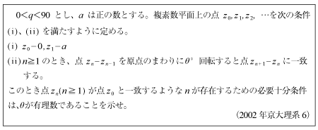 [B]複素数平面上の数列の周期の問題(2001年京大理系3)