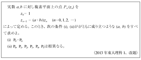 [B]複素数の漸化式の問題(2013年東大理科1、改題)