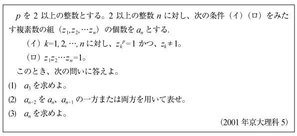 [D]複素数の数列と場合の数の問題(2001年京大理系5)
