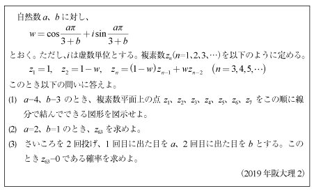 [C]複素数列と確率の融合問題(2019年阪大理2)