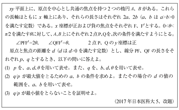 [C]楕円の焦点との距離の問題(2017年日本医科大5)