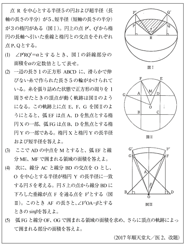 [C]楕円の面積の問題(2017年順天堂大/医2)