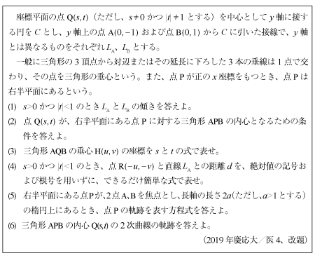 [C]図形と方程式と2次曲線を組み合わせた問題(2019年慶応大/医4)