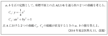 [B]放物線上の定点で直交する楕円を求める問題(2014年東京医科大11)