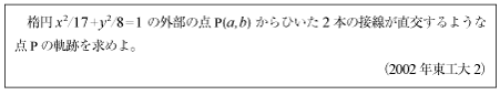 [A]楕円の方程式の問題(2002年鹿児島大理系52)