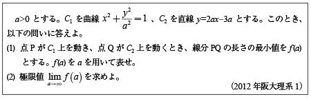[B]楕円と直線の間の距離の極限の問題(2012年阪大理系1)