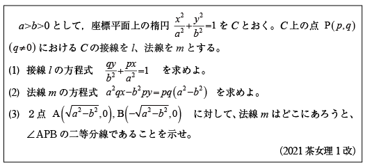 [B]楕円の接線と法線の方程式の問題(2021年茶女大理2)