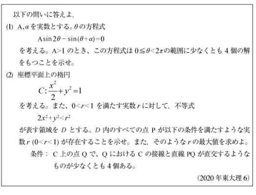 [D]楕円の法線を4本描く領域の問題(2020年東大理科6)