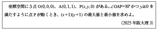 [C]円錐の断面上の変数の関数の問題(2025年阪大理3)