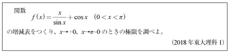 [B]関数の挙動を調べる問題(2018年東大理科1)