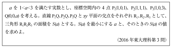 [C]空間における三角形の面積の最小値の問題(2016年東大理科3)