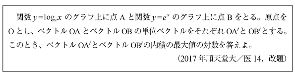 [B]指数関数・対数関数の接線の傾きの問題(2017年順天堂大/医14)