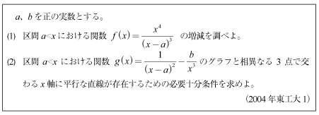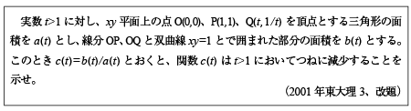 [B]分数関数の分子の2次導関数の符号を調べる図形問題(2001年東大理科3)