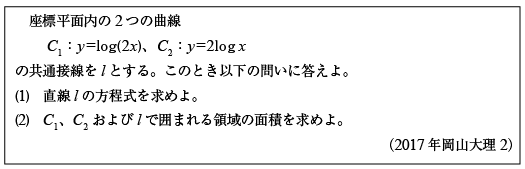 [B]2つの対数関数の共通接線と囲む領域の面積の問題