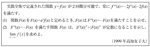 [B]三角関数・指数関数の微分計算の問題(1999年高知女子大)