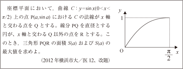 [A]sin関数の法線と三角形の面積の問題(2012年横浜市大/医12)