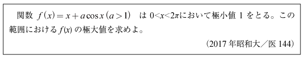 [B]三角関数の角度不明で極大値を求める問題(2017年昭和大/医144)