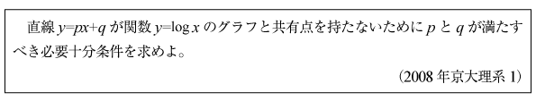 [B]対数曲線との交点の有無の問題(2008年京大理系1)