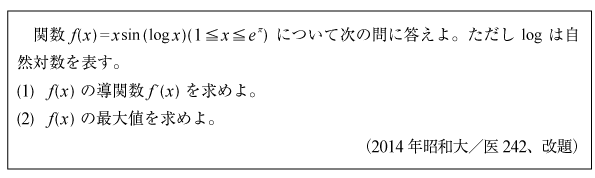 [B]対数関数を含む三角関数の挙動を調べる問題(2014年昭和大/医242)