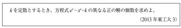 [C]指数関数とべき乗の差=kの解の個数の問題(2013年東工大3)