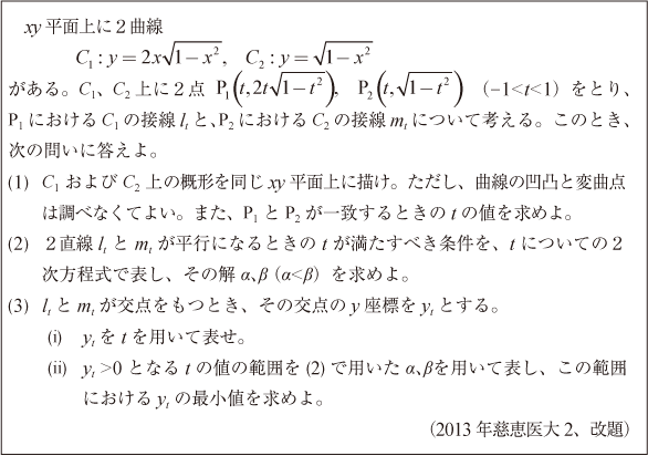 [C]円と曲線の接線の交点座標の問題(2013年慈恵医大2)