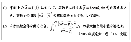 [C]ベクトルで記述された関数の積分の問題(2019年慶応大/理工13)