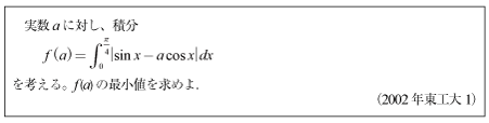 [B]絶対値記号付き三角関数の最小値を求める問題(2002年東工大1)