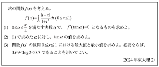 [C]絶対値記号付き積分の応用問題(2024年東大理2)