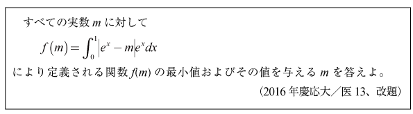 [B]絶対値記号付定積分の最小値の問題(2016年慶応大/医13)