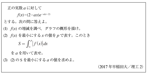 [C]絶対値記号付の微積分の融合問題(2017年早大/理工2)