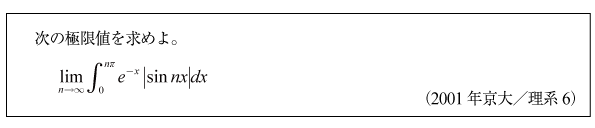[C]絶対値記号の付いた三角関数の積分の極限値の問題(2001年京大理系6)