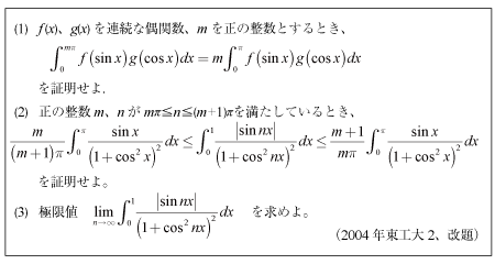 [C]絶対値記号の付いた三角関数の積分の極限値の問題(2004年東工大2)