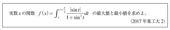 [D]絶対値記号付定積分の最大値・最小値を求める問題(2017年東工大2)