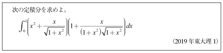 [B]置換積分で解く関数の積の積分問題(2019年東大理科1)