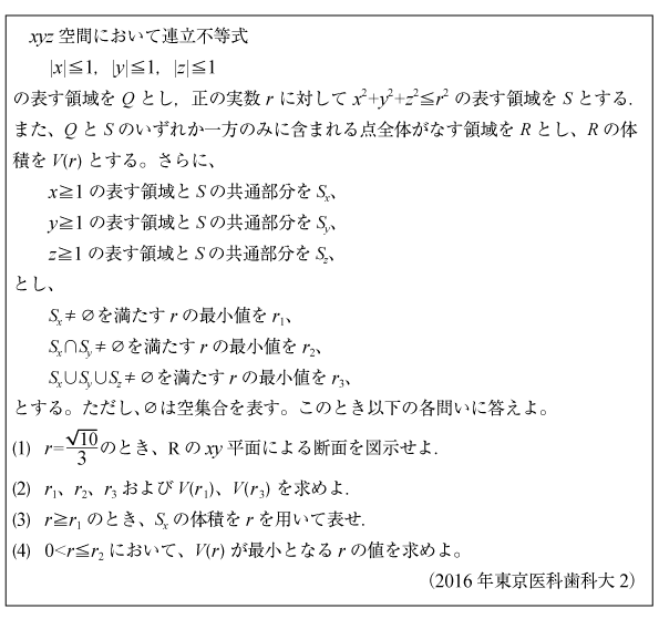 [C]集合と立体の体積の問題(2016年東京医歯大2)