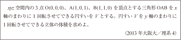 [C]円錐を回転させた立体の体積の問題(2013年阪大/理系4)