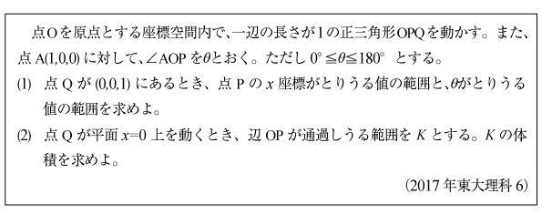 [C]円錐を回転させた立体の体積の問題(2017年東大理科6)