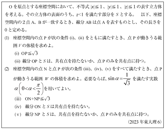 [D]立方体と球に関する体積積分の問題(2023年 東大理6)