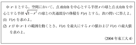 [D]計算が面倒な2つの球の共通部分の体積の問題(2004年東工大4)