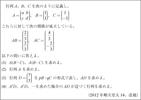 [C]行列の積の極限の問題(2012年順天堂大/医14)