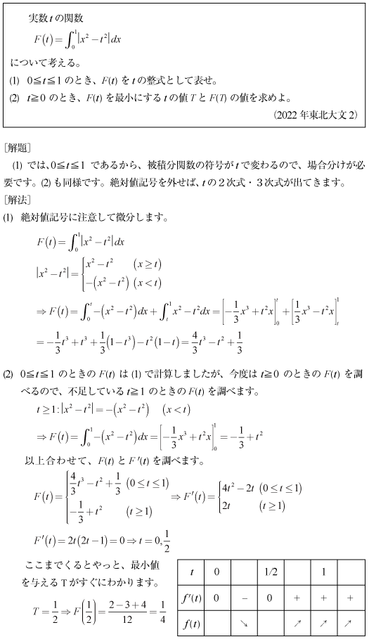 [B]絶対値記号を含む2次関数の微積分の問題(2022年東北大文3)