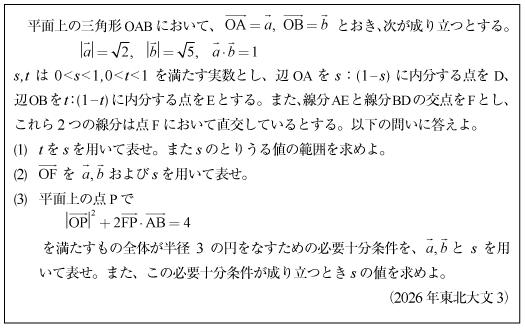 [C]三角形とベクトル方程式と円の問題(2026年東北大文3)