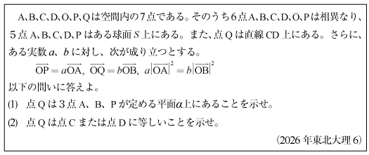 [C]球面上と平面上の点の所属の問題(2026年東北大理6)