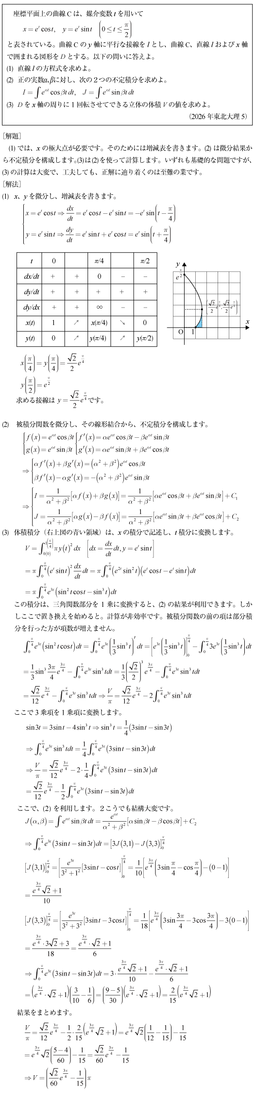 [D]媒介変数曲線の総合問題(2026年東北大理5)