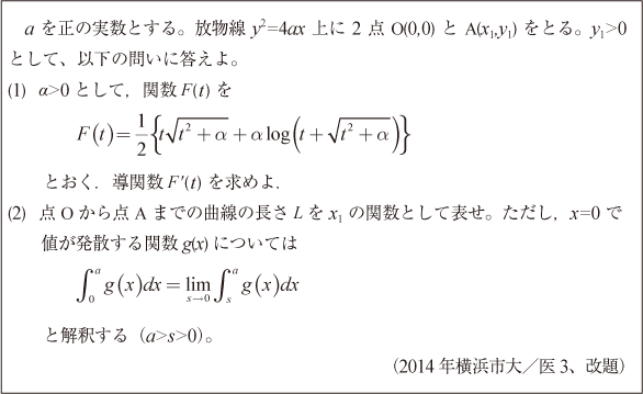 [C]放物線の弧長の積分問題(2014年横浜市大/医3)