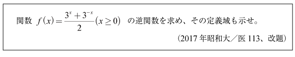 [B]双曲線関数に似た関数の逆関数の問題(2017年昭和大/医113)