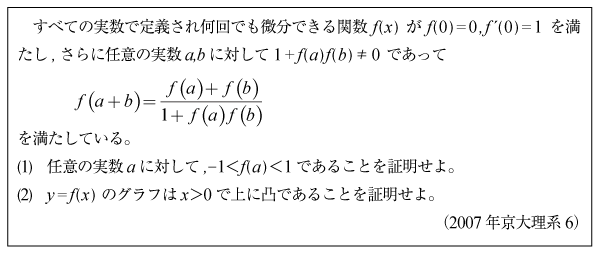 [C]双曲線関数の挙動を調べる問題(2007年京大理系6)